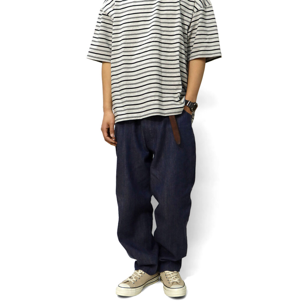 9ozデニムの軽さを活かしテーパードを効かせたゆとりあるシルエット。
