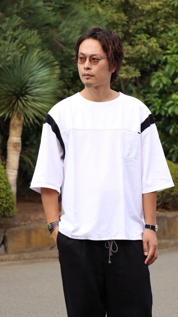 明日発売アイテムの『MESH SWITCHING FTBL TEE QS / NEWTON』のスタイリング紹介!