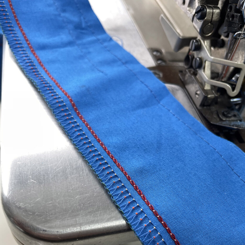 今回のミシンは3本針6本糸インターロックミシン(安全縫い)