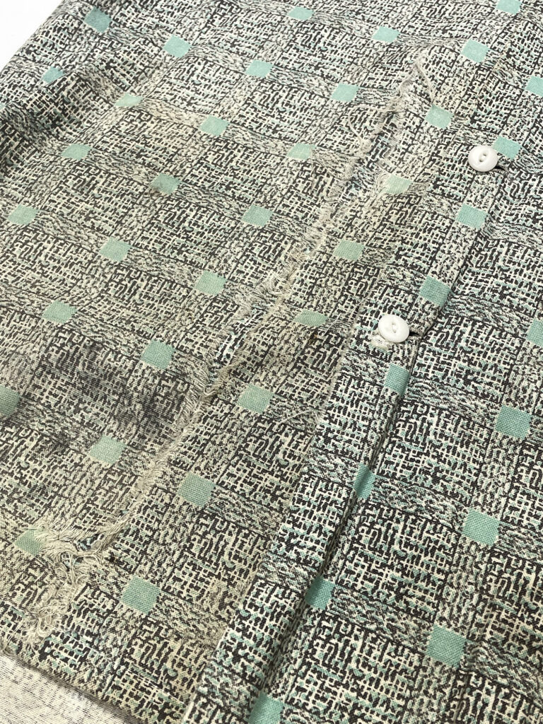 身頃の破れも同様、袖生地を使い見返し&裾口を一度ばらして修復。