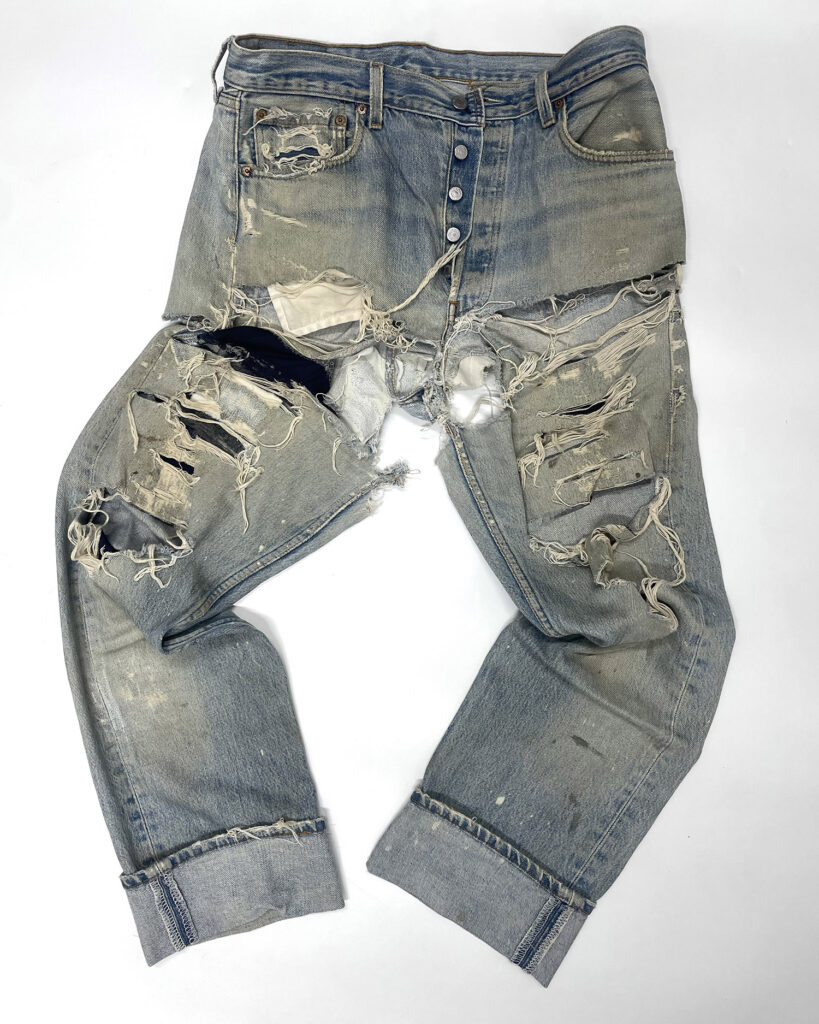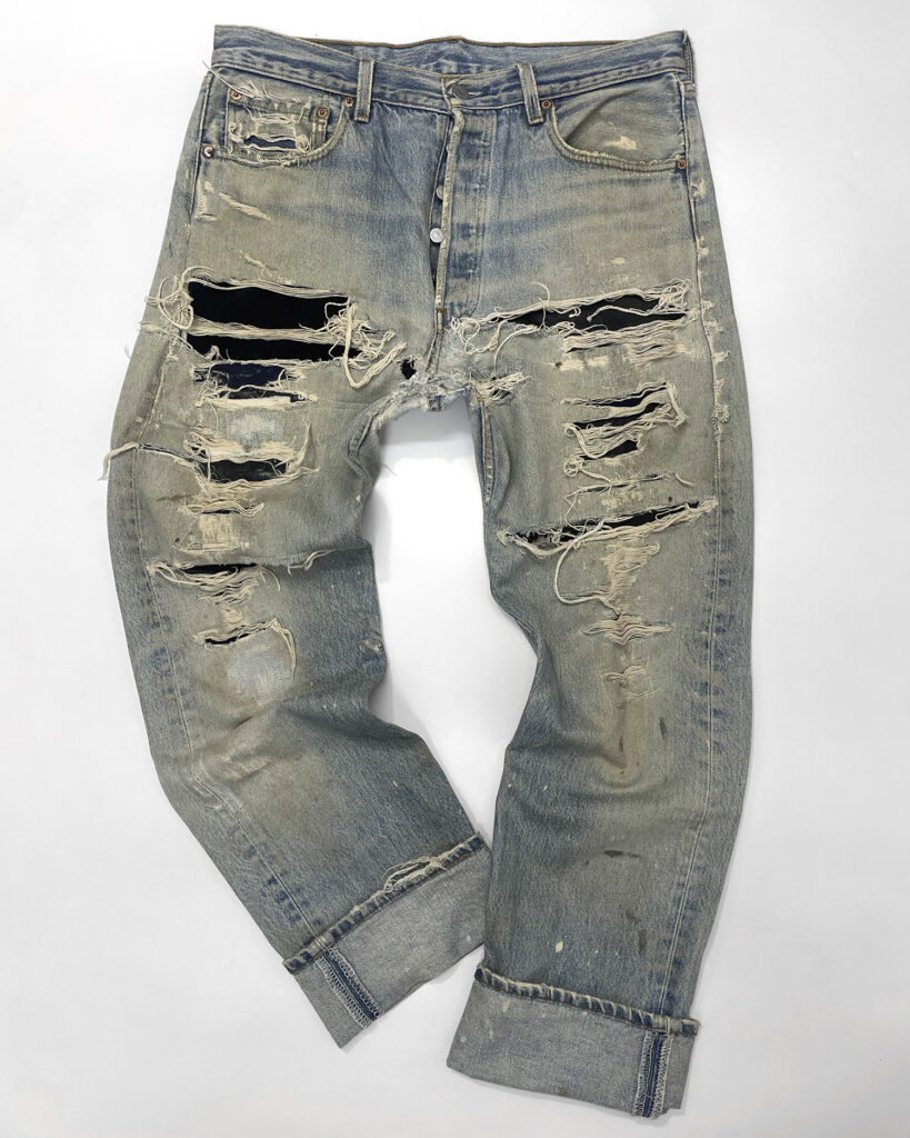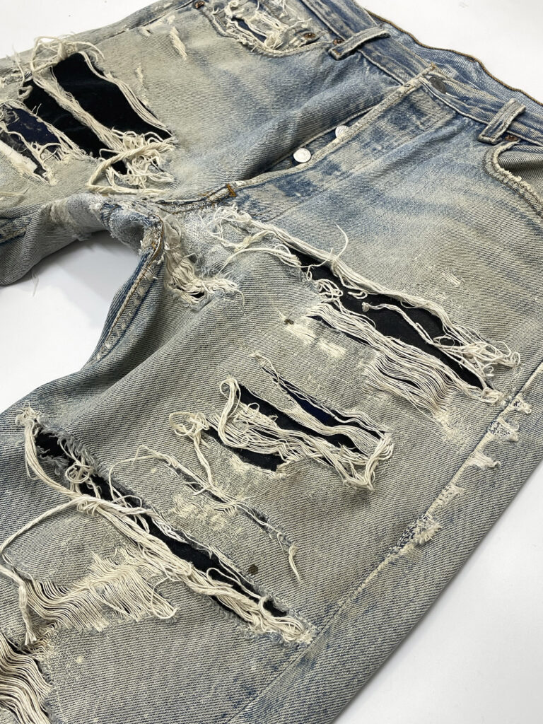 お馴染みリーバイスの501。パンキッシュなダメージですな。股が無い。笑